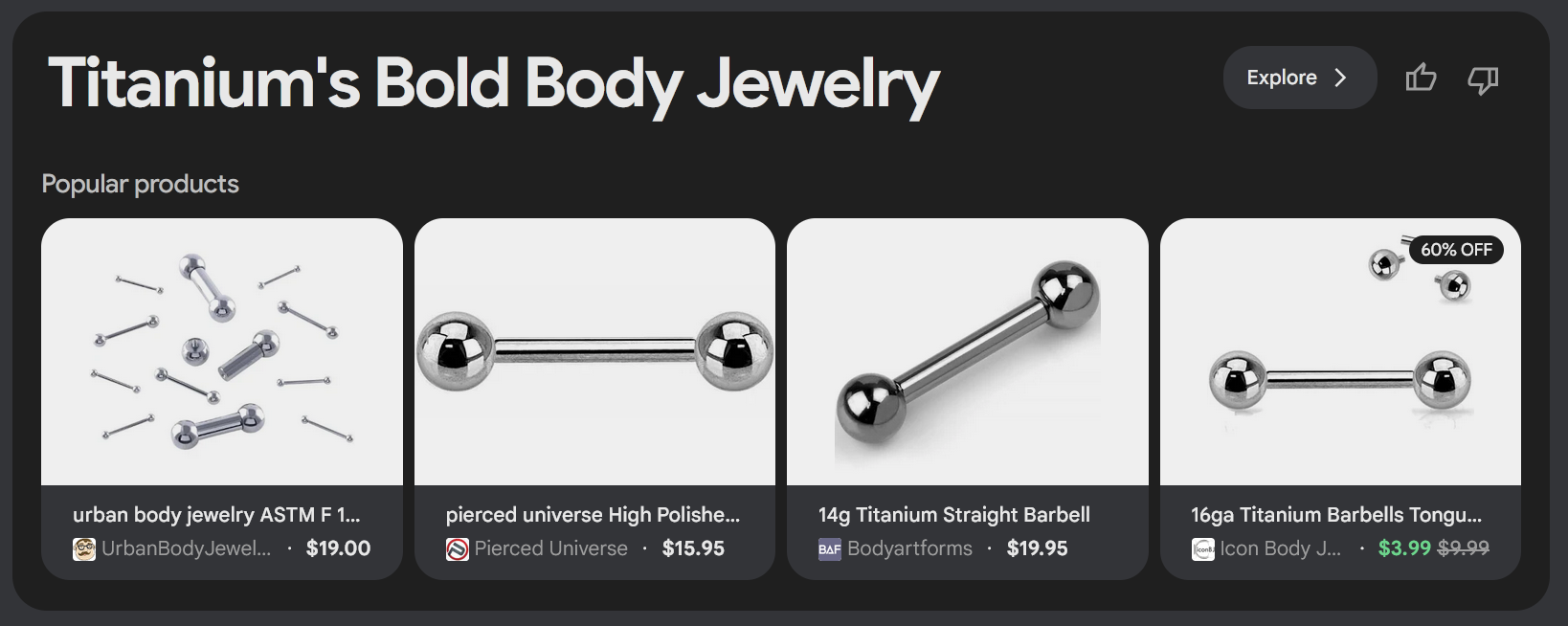 and then "Titanium's Bold Body Jewelry" just makes no sense