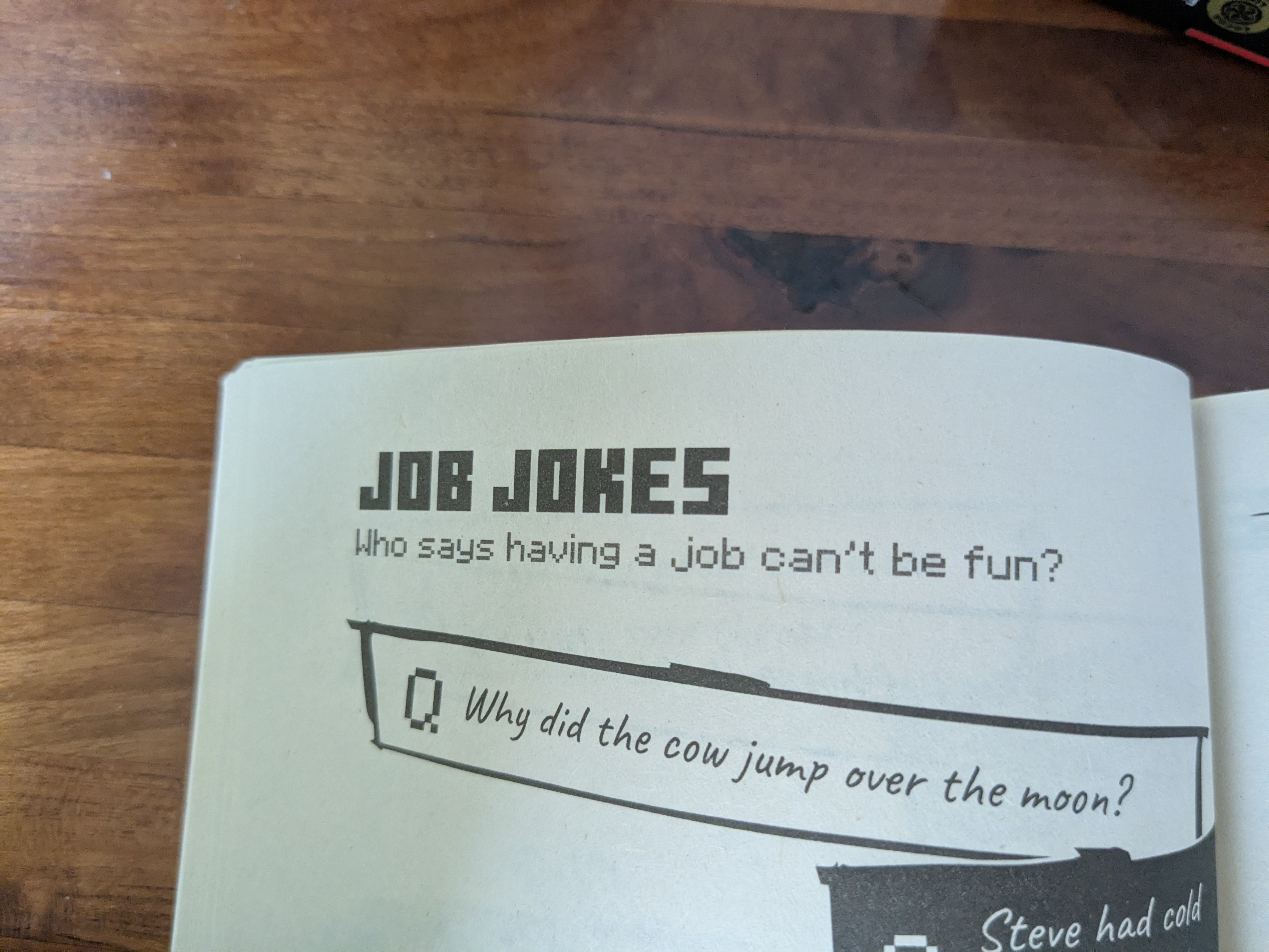 This is a two-part book, the other half is a joke book. I won't spoil the jokes just yet, but I want to highlight this heading
